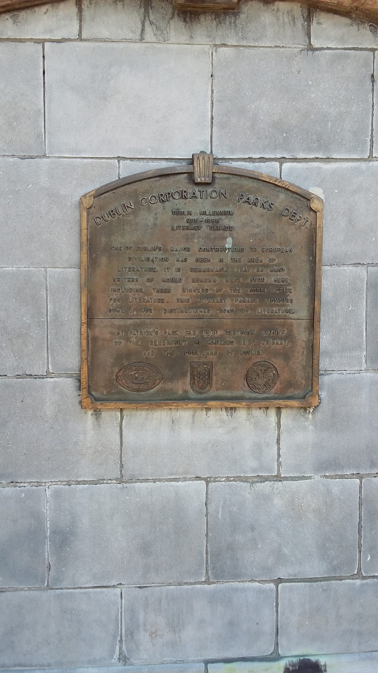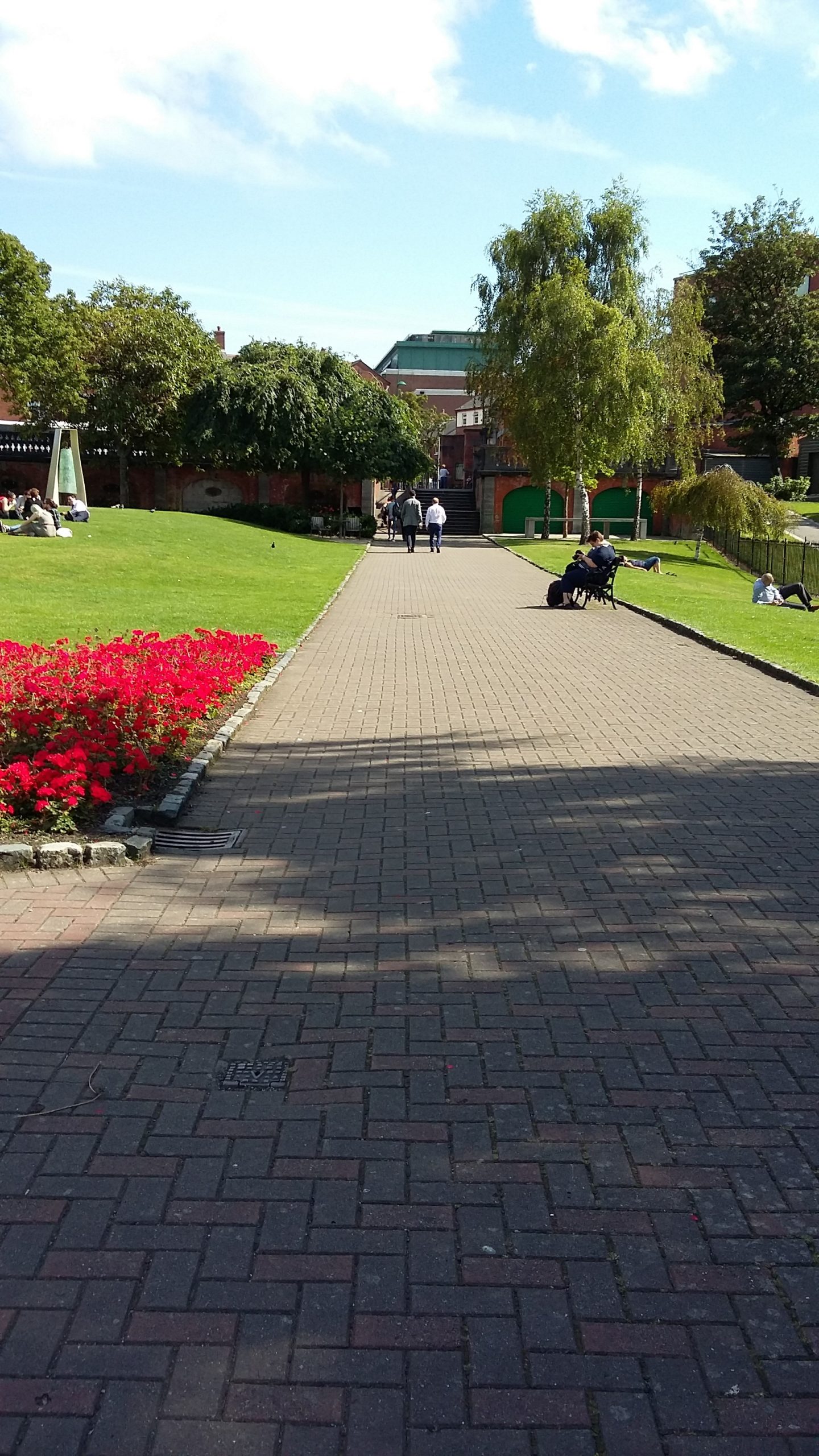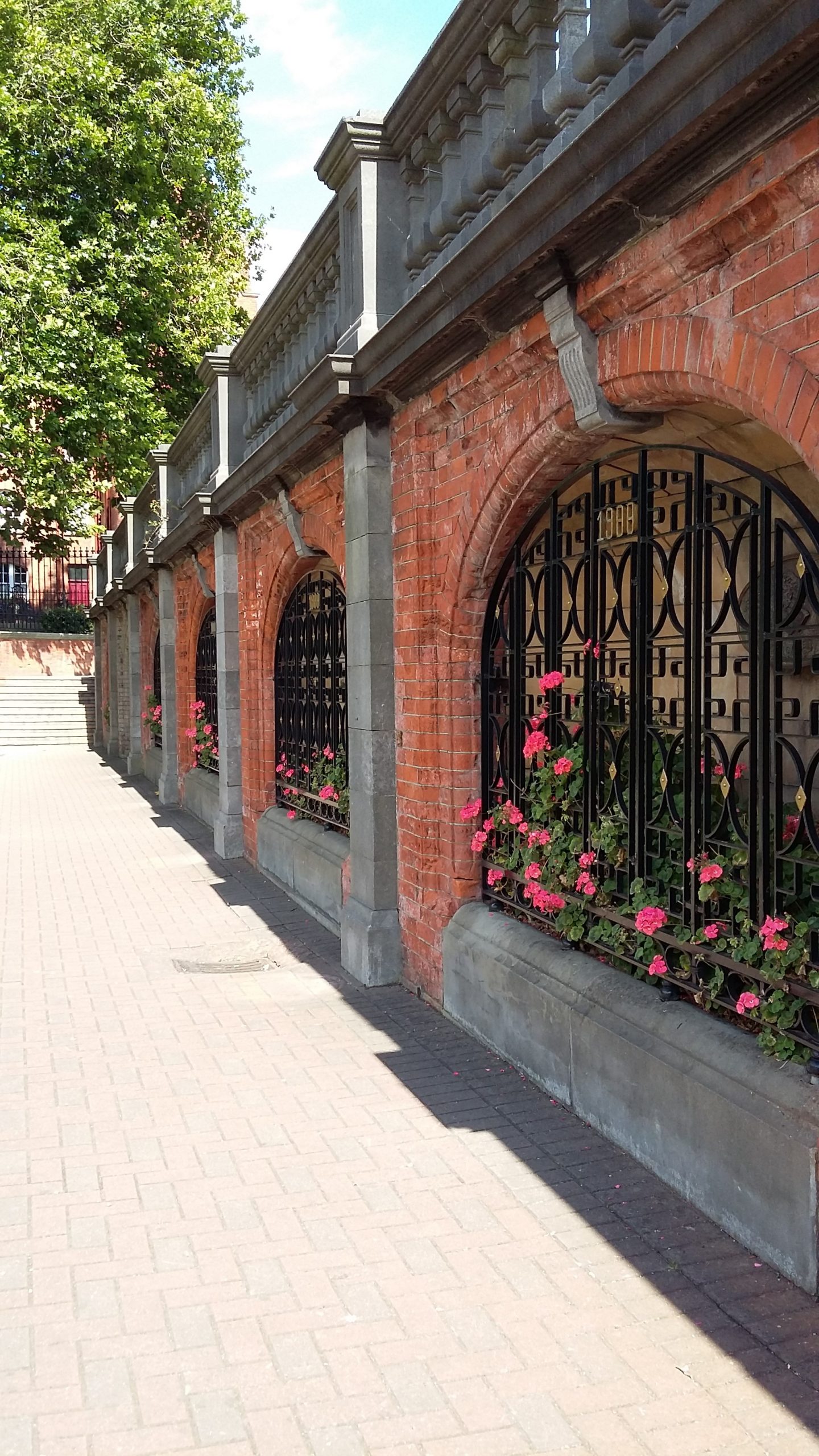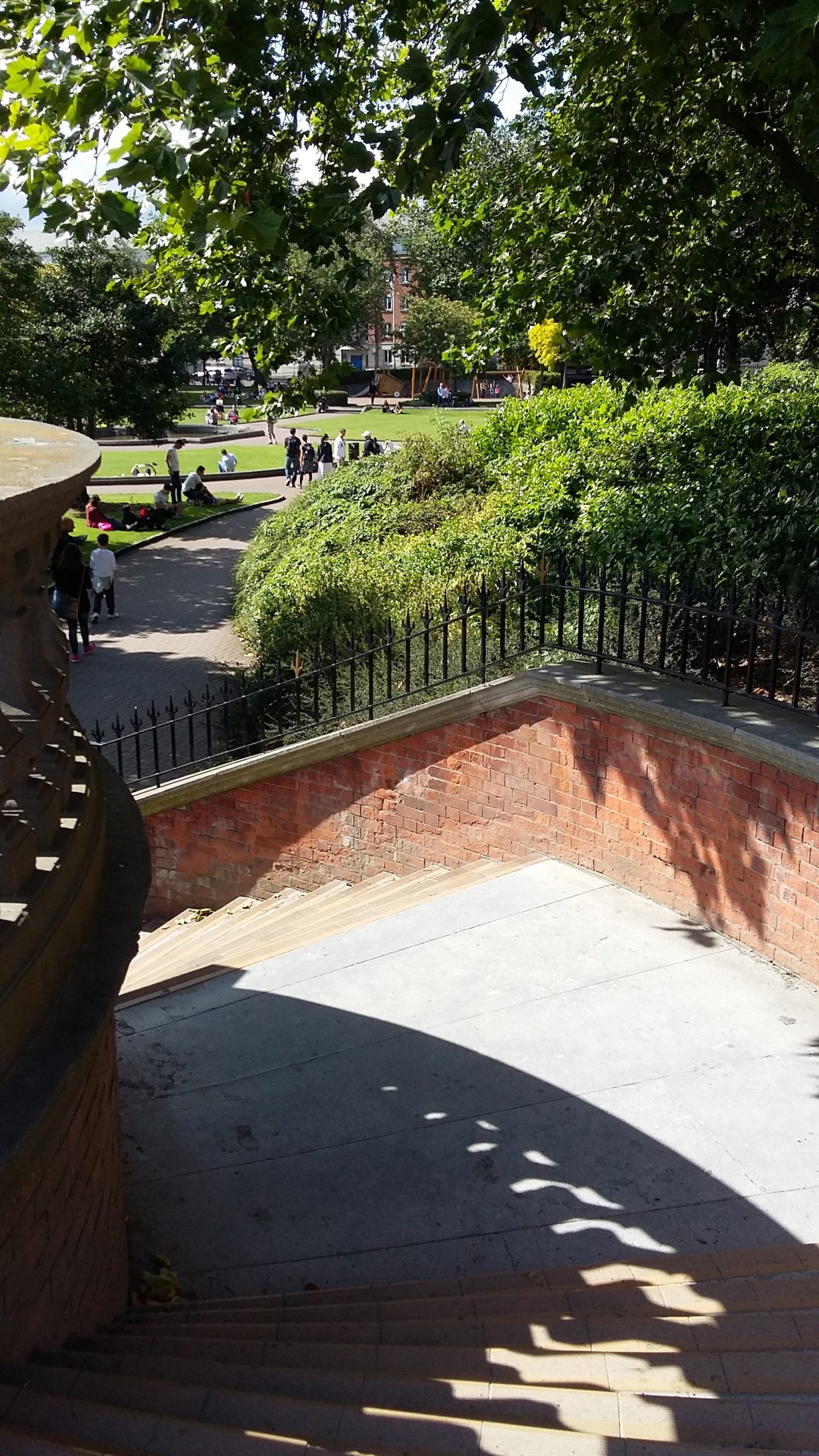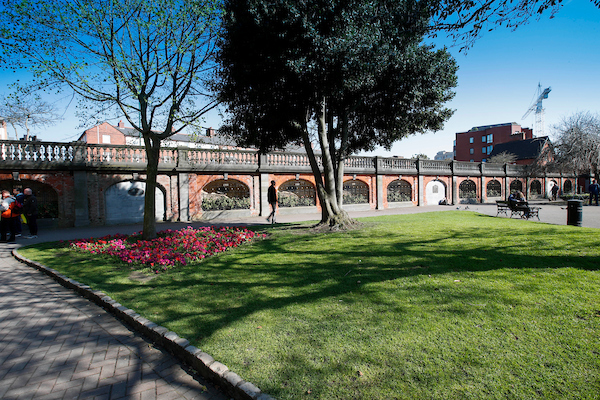 A brick terrace was constructed to cope with the fall in ground level between Bride Street and Patrick Street, the upper level of which was used as a bandstand while the lower level provided a sheltered seating area.