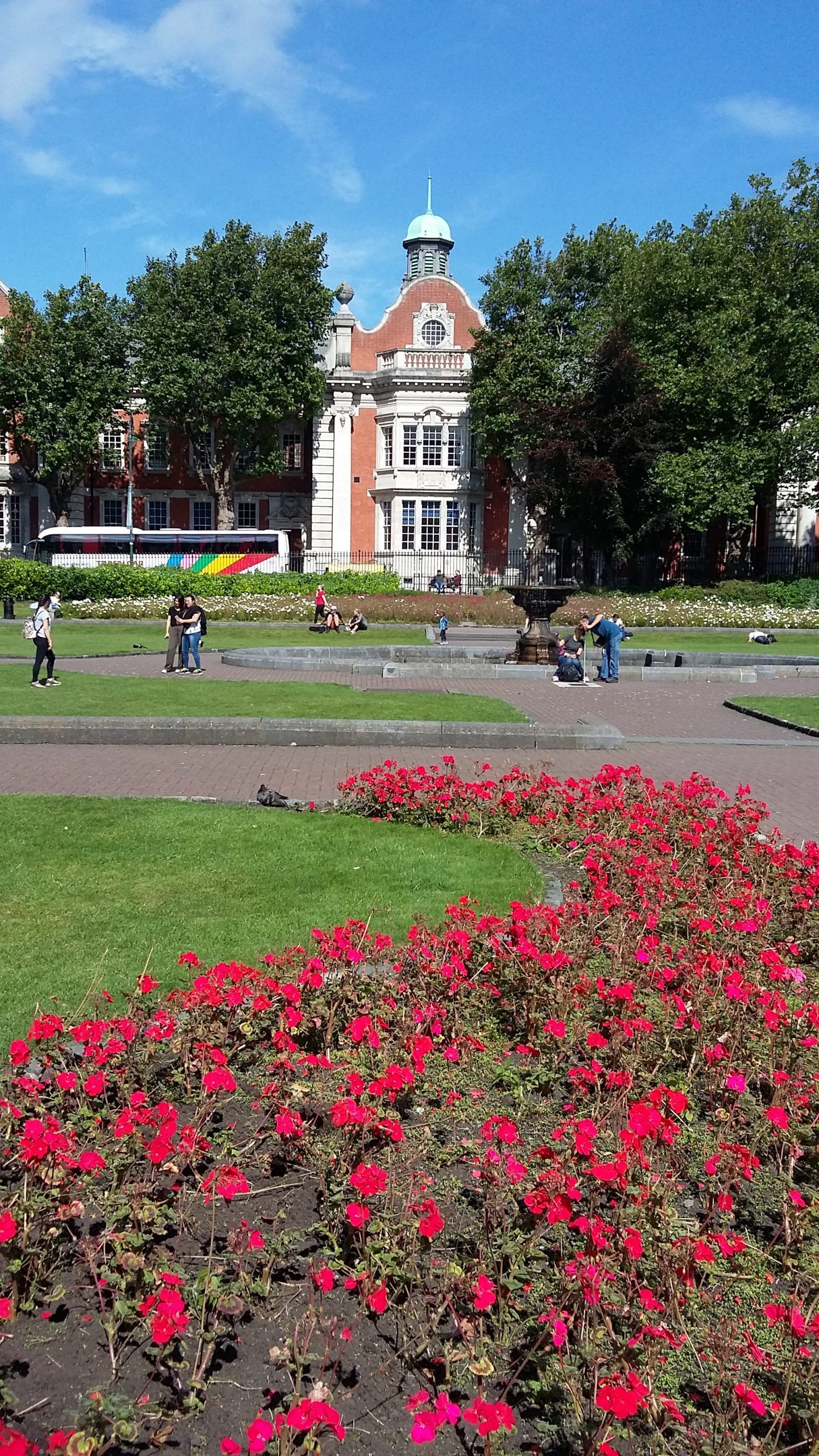 The landscaping was the work of Mr. Crasp of Chester and the construction work was undertaken by engineer Mr. Arthur Dudgeon. The geometric landscaping is enhanced by the two stone fountains on the park’s principal axis and a modern sculpture of a steel bell by Vivienne Roche.
