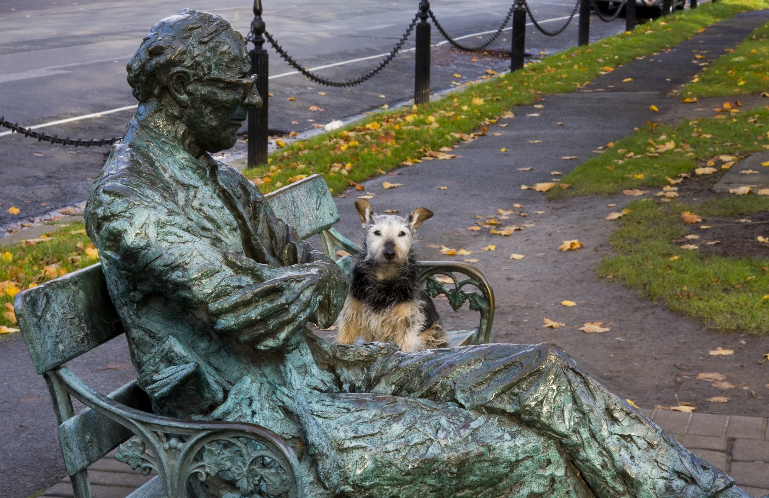 Bronze statue of poet Patrick Kavanagh on the Grand Canal, Dublin