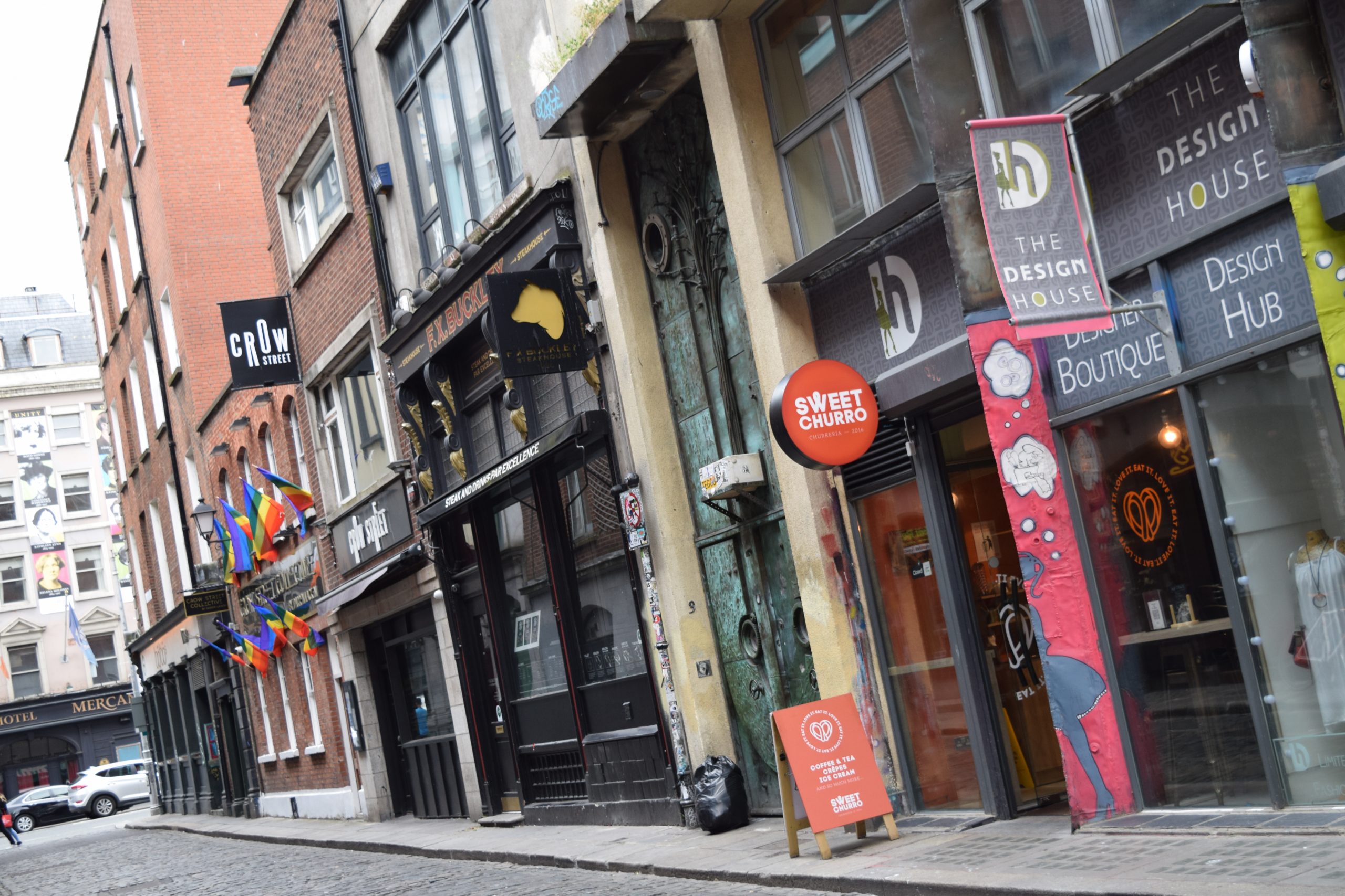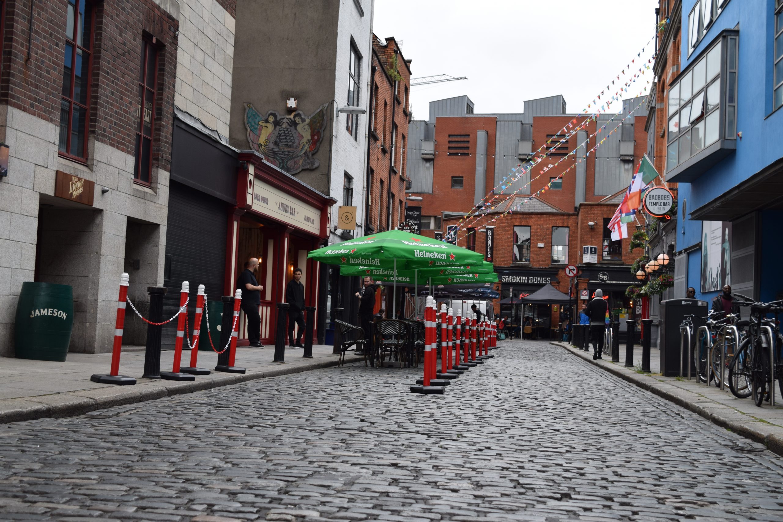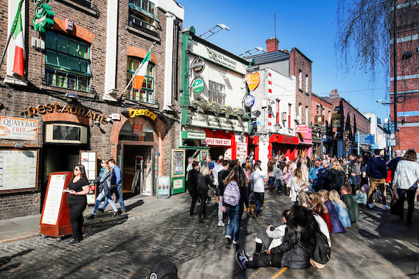 Temple Bar is a busy riverside neighbourhood, spread over cobbled pedestrian lanes. Crowded pubs host live folk music and DJ sets, and diners pack restaurants serving Asian, American and Irish cuisine. Quirky boutiques stock clothes and crafts by local designers.